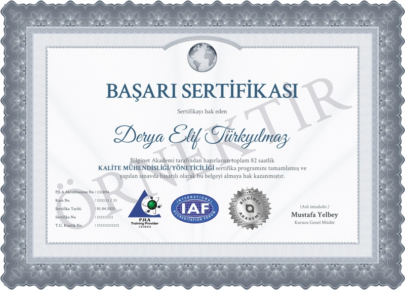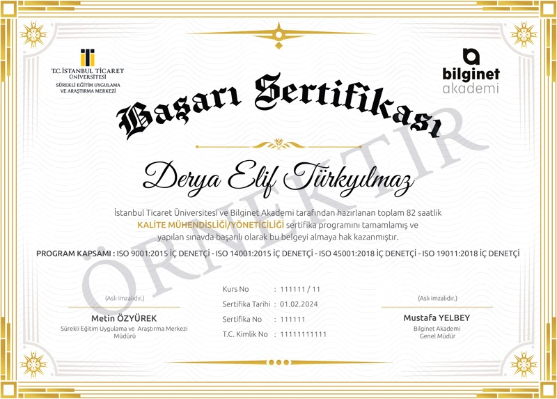 ISO 9001 Kalite Yönetim Sistemi standardında iç denetçilik yapabilme hakkına sahip olursunuz.